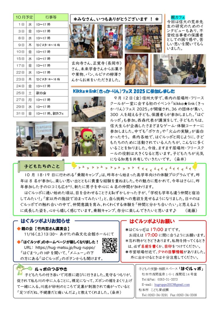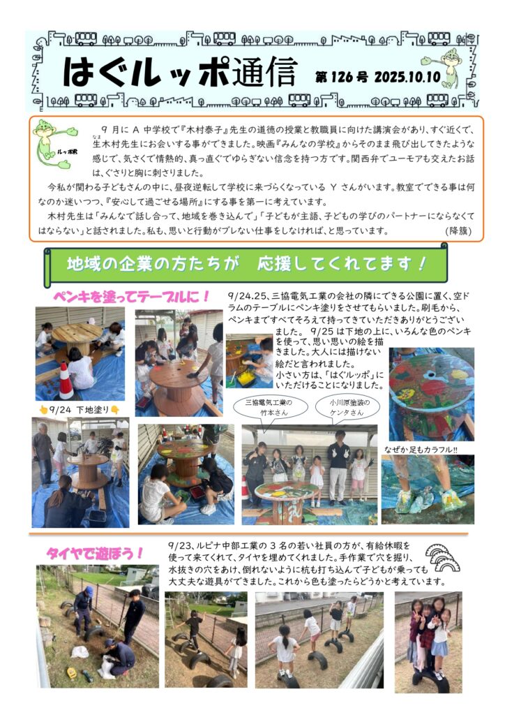 はぐルッポ通信(第126号)を発行しました。(不登校・不登校傾向、登校拒否などの状態にある子どもたちへの居場所提供、相談支援)