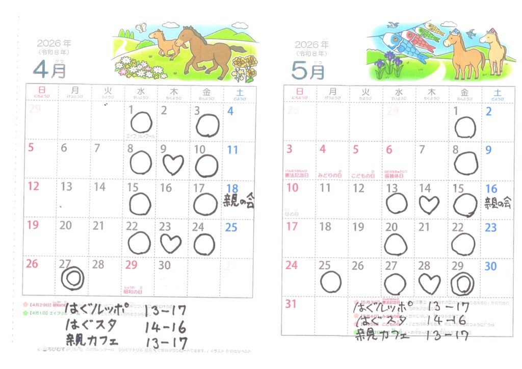 - 「はぐルッポ親の会」 毎月第3土曜日